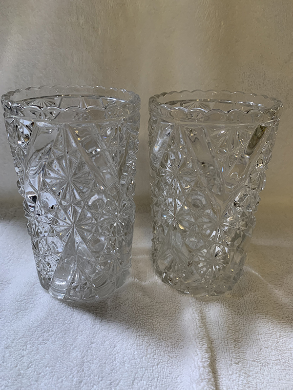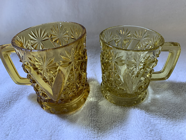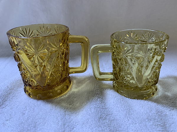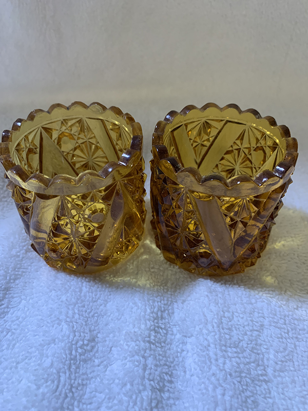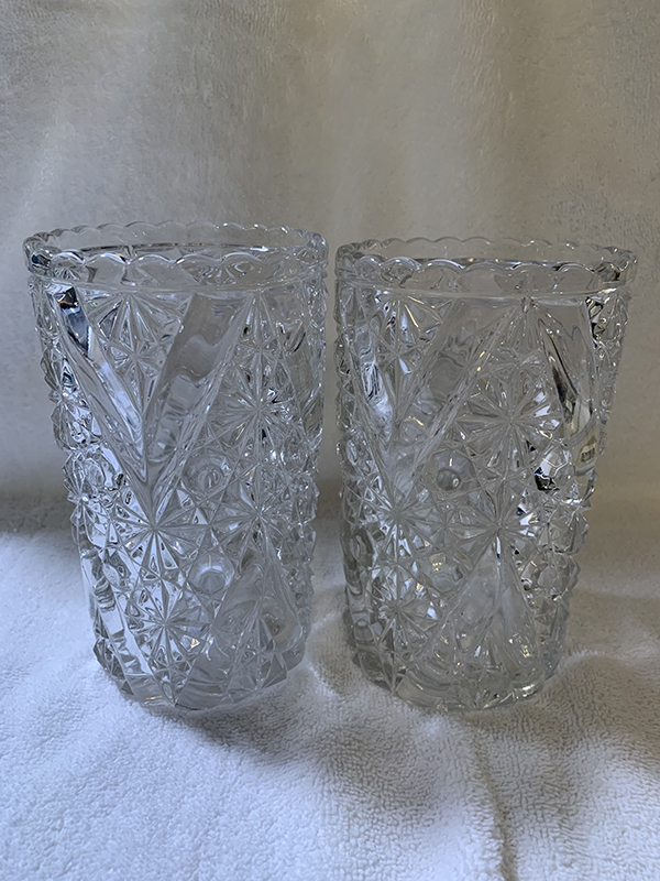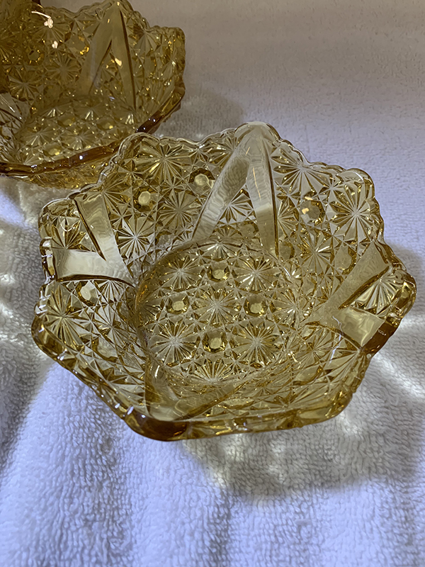 Friday, April 2, 2021 Friday is my first day back at work since being sick 2 days with my ongoing IBS issues. It was a humdinger of a day, too! It truly amazes me how people call a clinic on Friday afternoon to ask for refills and want them sent in right then and there! Refill requests have a 2-3 business day window because of the sheer volume of requests, not to mention the fact the clinic is still trying to go through regular operations with patients in the clinic, and then there's the fact a lot of clinics will close early on Fridays - especially on Good Friday. And people get so mad and nasty when you explain to them the 2-3 business day window for refills. But, it's over with now, and I want to get on to the good parts of today.Max was acting a lot friskier and happier today, which could mean several things, but I'm not going to explore those avenues and will just be happy that he was feeling good today. Maggie was a pain in the ass for a good bit of the day, constantly asking me to go outside. I can't blame her, it was a beautiful sunny day and I hated being stuck inside myself, but I can't just let her go out whenever she likes when I'm manning the phones lol. And it's not like I can just let her go outside by herself - although earlier this week, when I had taken Max out for his 4:50am walk, she came out on the porch to sit and wait for us. I can leave her unsupervised - for a short while - on the porch because with the gate closed, she doesn't try to leave it. So, Max and I went our merry way, and we came back, I brought him inside, fed the fish, fed him and myself, and went about my morning. At 7:15am, I went to feed the chickens and looked for Maggie to come running to go out with us. She never came. At that point, I realized to my horror that I had left her on the front porch! She sometimes will hide under a table out there when I come back, and I had on that day forgotten she even went out with us! So I went flying through the house from the back door to the front, flung open the front door, and there she was, screaming her head off to come back inside! Needless to say, she did not accompany us out the back door to feed the chickens lol. I felt so bad, but she is partly to blame for hiding lol. Now I make sure, if she comes out with us in the morning, that I remember her when we return! In other news, I had some glassware arrive today as well. The first box that arrived, via FedEx, was a large box of a 17-piece-lot I had bought on eBay. These are all amber colored pieces of Daisy and Button with V Ornament, aka Vandyke, and are from 1886. Unfortunately, one of the pieces arrived broken - a creamer, which is really the first creamer I've ever even seen in this pattern. So, I was heart-broken that it didn't survive, but fortunately, the other 16 pieces did. Those pieces include 6 small berry bowls, 2 celery vases in different shapes (one regular, one flared), a spooner, 2 tumblers (one regular, one that was etched with the date of 1886 and what looks to have been a family name on the other side, perhaps "Fainer"?, but it was then ground down to be shorter than the regular tumbler), 2 toothpick holders, a rectangular relish tray, and 2 mugs (one looks to be an adult's, the other is more child-sized). They are shown below, in the order I mention here, one row per description. I had also ordered what I thought to be a milk pitcher in amber in the Daisy and Button with Crossbar, aka Mikado, pattern. The measurements given on the eBay listing were wrong - it's actually a water pitcher, so I now have 2 amber Mikado water pitchers. I'll just display them next to each other. Next is a pair of clear Daisy and Button with V Ornament celery vases. While the hubby and I tend to prefer colored glass, the clear glass can be just as beautiful, and I'm quite happy to have gotten these. And then the last item I got is a clear water tray in the Daisy and Button with Narcissus, aka Daisy and Button with Lily, made by Indiana Glassware in 1910. I have a water pitcher in this pattern arriving today, and I also ordered two goblets, so I'll have a nice little set when they all arrive. Hopefully this influx of pictures will make up for the previous 2 days when I wasn't feeling well! Anyway, please enjoy the pictures and have a fantastic weekend! George |